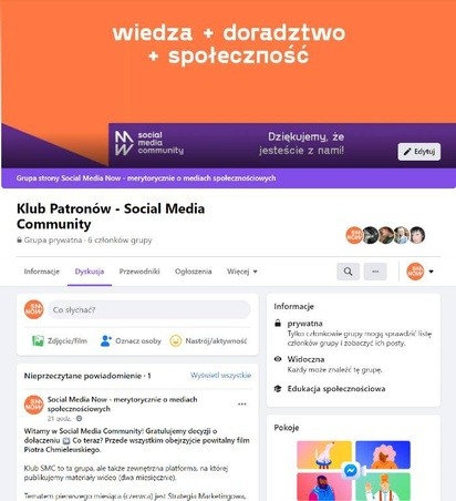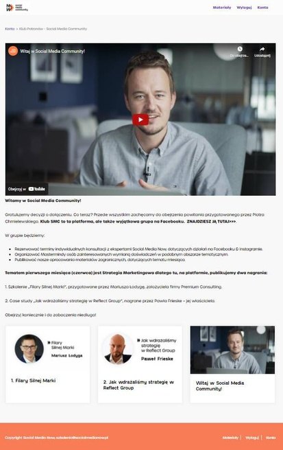 Stworzyliśmy specjalną platformę dla członków Social Media Community. Będziemy tam publikować materiały wideo. W zamkniętej grupie na FB będziemy natomiast przeprowadzać konsultacje, LIVEy i odpowiadać na Wasze pytania.